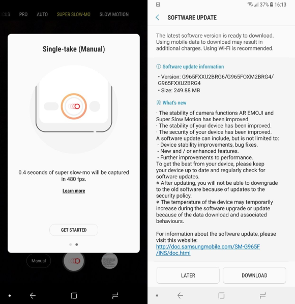 According to several reports, the new software update for the Galaxy S9 and S9+ is said to come with a 480fps option. With its lower frame rate, this allows you to capture the moment at double the duration of 0.4 seconds. Surprisingly, this is enabled for the manual option where you’ll need to hit the on-screen shutter button for it to capture. The 960 fps option is still there and it’s available for the automatic super slow-mo mode.