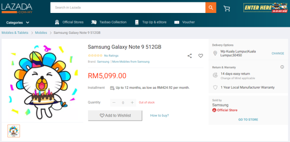 UPDATE: Lazada Malaysia has reached out to us on the pricing details. According to them, the official retail price of the Galaxy Note9 has yet to be announced and it may be different from the one shown in this post.