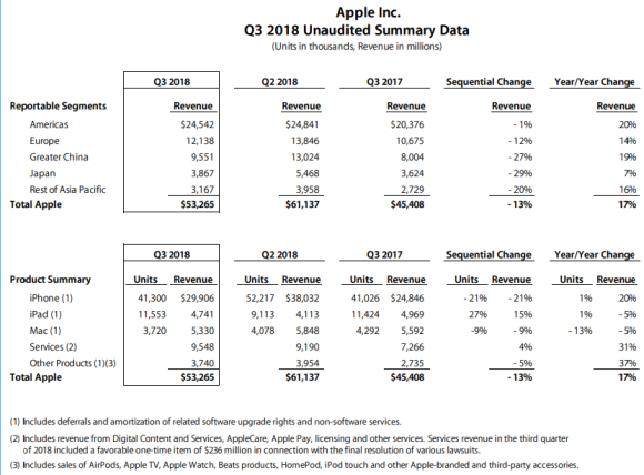 According to Apple’s Fiscal 2018 Q3 report (1 April to 30 June 2018), this is their new record for the June Quarter. Fiscal Q3 is often the slowest time of the year but they have managed to record a total revenue of US$53.3 billion.