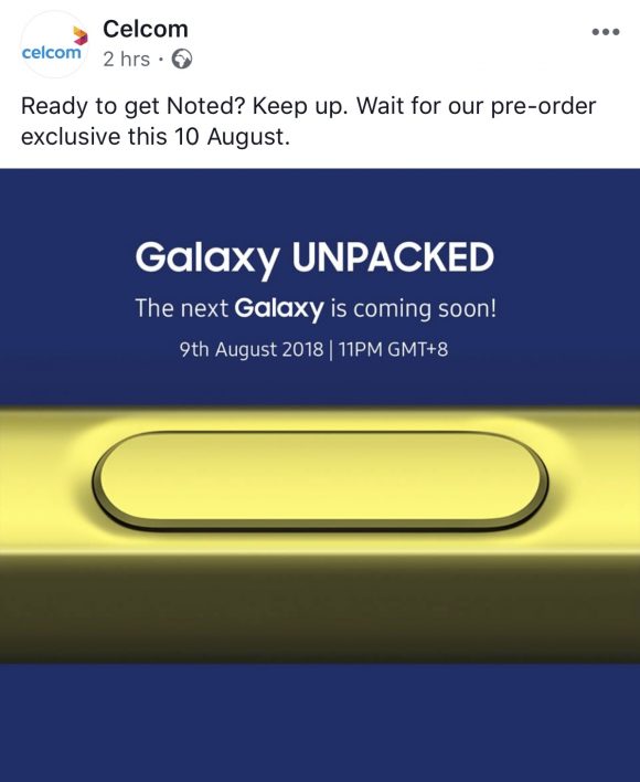 According to their Facebook post below, you can pre-order the Samsung Galaxy Note9 as early as 10 August 2018 from Celcom. No further details were provided but based on last year’s Galaxy Note8 offering, you can expect a 24-month contract on a Celcom postpaid plan of RM98 and above.