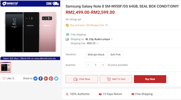 The folks at DirectD is offering the Galaxy Note8 in Pink for only RM2,499. If you prefer the Midnight Black variant, it will cost you RM2,599. These are official set with Samsung Malaysia warranty. You can check out the listing at DirectD and Shopee.