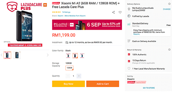 If you prefer a smartphone with stock Android, the Xiaomi store on LazMall is also offering the same Lazada Care Plus protection for the Mi A2. The price remains unchanged and the Mi A2 is priced at RM999 for the 4GB RAM + 64GB storage model and RM1,199 for the 6GB RAM + 128GB storage option.