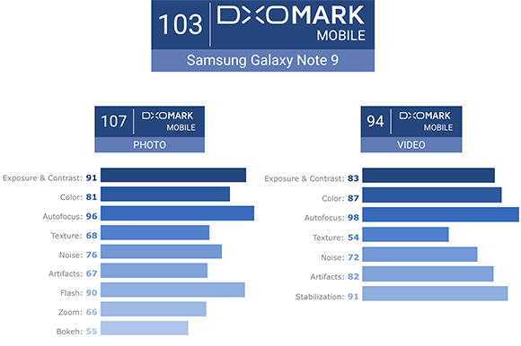 Overall, the Galaxy Note9 scored a total of 103 points, which is the same score achieved by the HTC U12+. It gets 107 points for Photos and 94 points for videos. In their conclusion summary, DxOMark did mentioned that exposure inaccuracies sometimes do occur and there are occasions that fine details are sometimes lost in darkest and brightest areas. If the flash is used, they reported that it produces inconsistent white balance between shots.