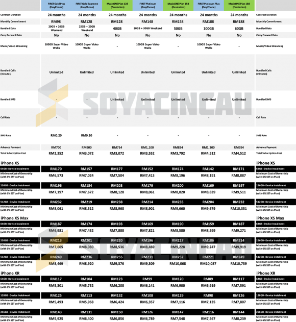 At the moment, all four telcos are offering the iPhone XS, XS Max and iPhone XR with a 24-month contract. Below is the breakdown including the device cost for all storage options, subscription fee and the minimum cost of ownership inclusive of 6% SST for the postpaid plan. You can click on the table below for a larger view.