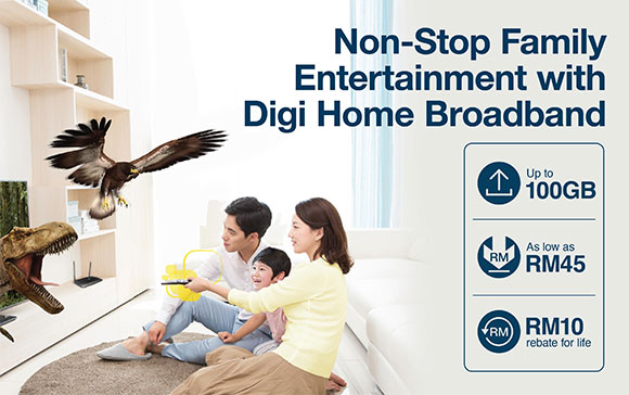 If you’re an existing Digi customer, you can get an extra lifetime rebate of RM5/month for Broadband Monthly 45, and RM10/month rebate for Broadband Monthly 65 and 105.