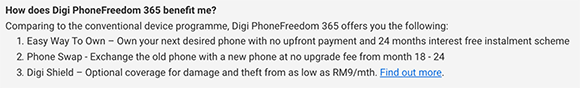 UPDATE 2: Digi has updated their PhoneFreedom 365 promo page which now indicates that 365 Phone Protection via Digi Shield is optional. The FAQ is also updated to reflect this as well.