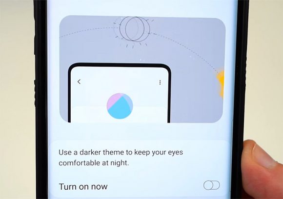 Based on @UniverseIce’s tweet, the latest Android Pie beta release for the Galaxy Note9 had revealed something interesting about Samsung’s next big thing. The update comes with a new Night Theme mode which automatically transitions to dark mode as night falls.