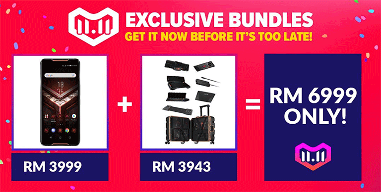 The ASUS ROG Phone officially retails for RM3,499 for the 8GB RAM + 128GB version and RM3,999 for the top of the line 8GB RAM+ 512GB model. During the 11.11 online sale, you can get the 512GB ROG Phone with all of the optional accessories for only RM6,999.