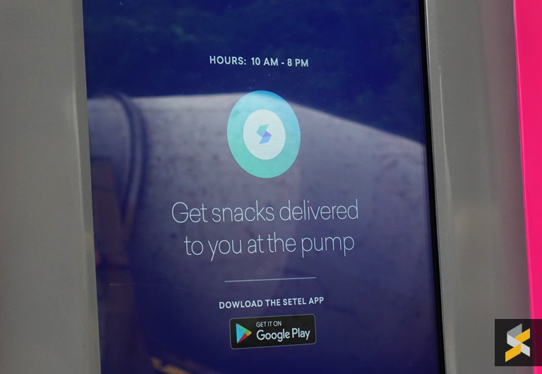 Interestingly, there’s also a digital kiosk right next to the pump. It appears that you can order food and drinks from the pump, and a staff will deliver your order