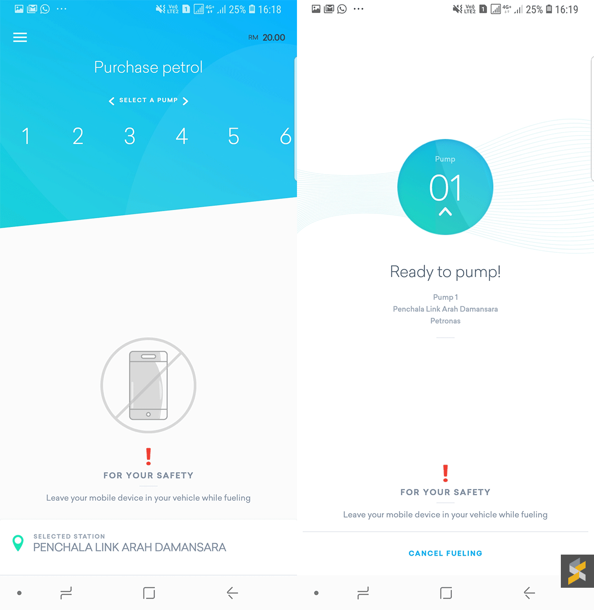 Since you’re not allowed to use your phone next to the pump, the app constantly reminds you to leave the phone in the vehicle at all times. Since I’ve just pumped full tank yesterday, I only need to refuel RM10.51 worth of RON95 petrol for this test.