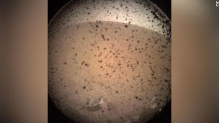 A few minutes after the three-legged lander settles on the surface of Mars, JPL controllers have then received a not-so-clear-picture, showing the surroundings that it had landed on.
