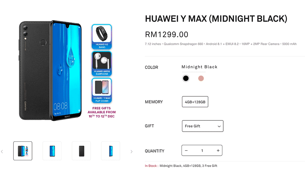 The Huawei Y Max is officially priced at RM1,299 and it comes in either midnight black or amber brown for its faux leather back. If you order from 10 to 12 December 2018, Huawei is bundling a Huawei Y Max Flip cover (worth RM78), a Huawei AM116 earphone (worth RM48) and a Huawei A2 Band (worth RM169).