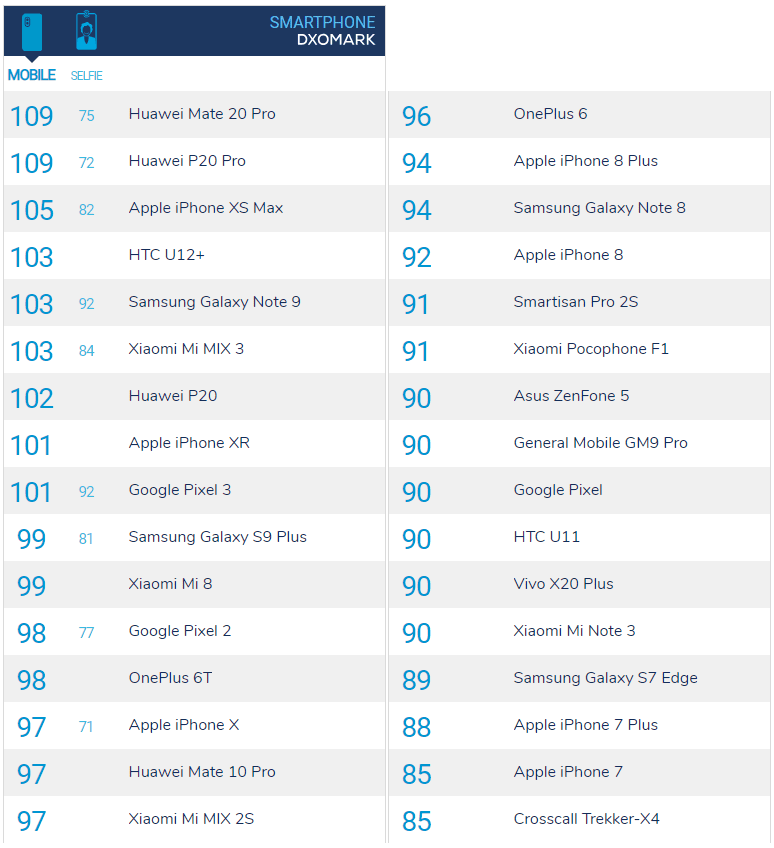 Below is DxoMark Mobile’s current smartphone ranking for your reference: