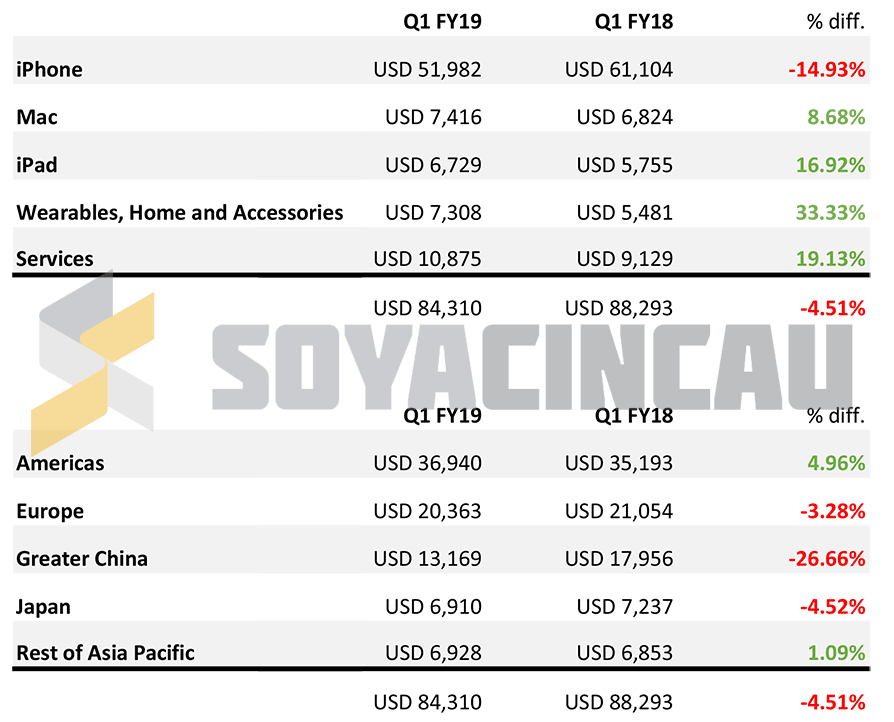 Earlier this month, Apple revealed that they are expecting lower revenue for its fiscal 2019 first quarter which ends on 29 December 2018. It was quite surprising and it marks the first Q1 revenue decline for Apple since 2001. The quarterly results are finally out and they had posted revenue of US$84.3 billion which is a 5% drop from the same period last year.