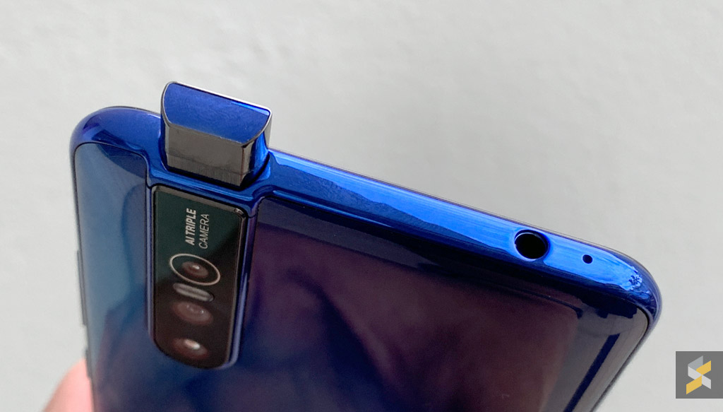 Over at the back, the V15 Pro gets a triple camera setup that’s assisted with a bunch of AI beautification features. It’s arranged vertically on a huge bump that’s aligned with the pop-up selfie camera.