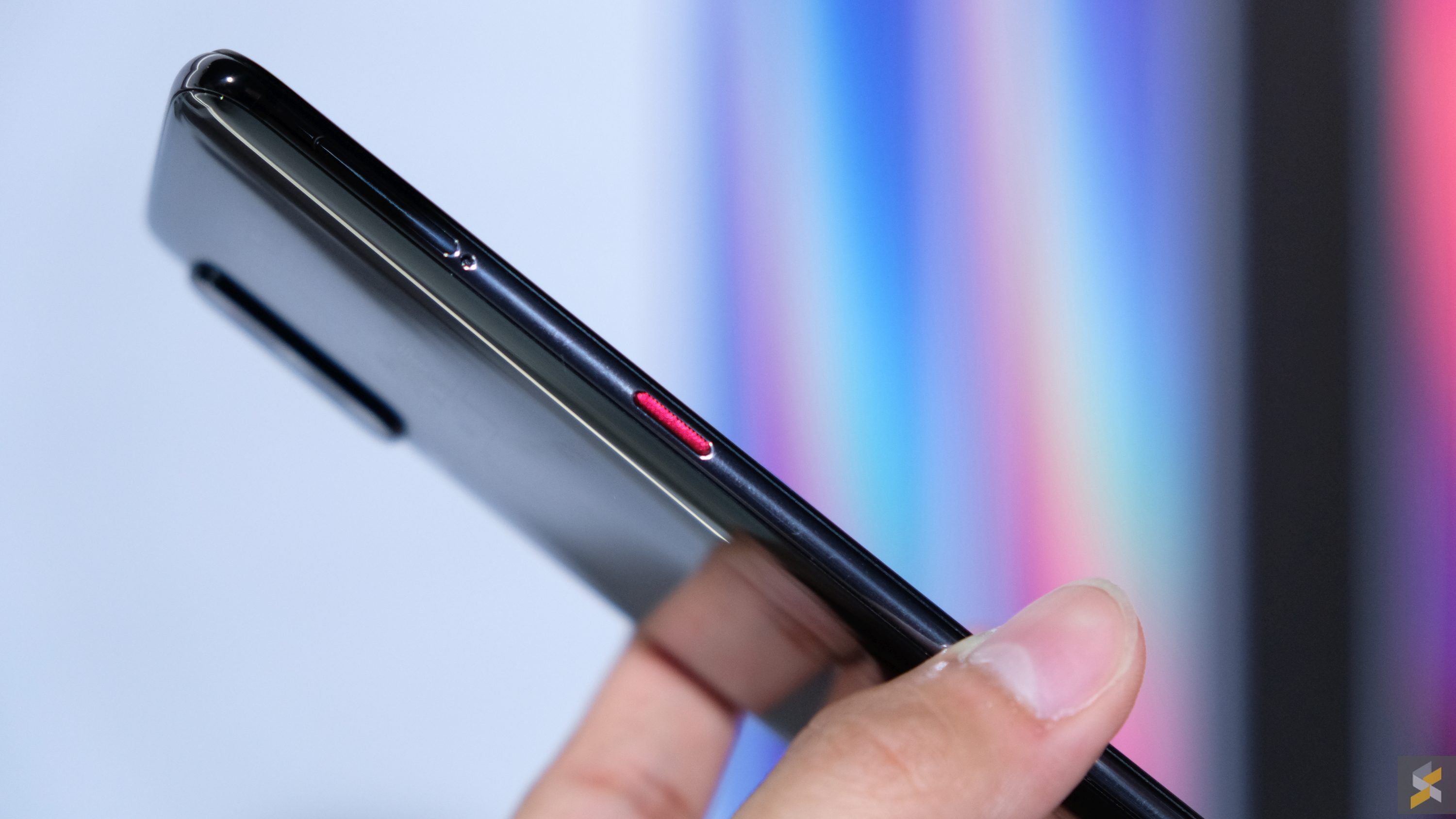 But simply curving the back of the phone wasn’t all Xiaomi did. They also treated it a little differently with a number of layers, made up of materials I’ve never heard of before today, so that when light hits the back of this smartphone, it will spread across the device in a gorgeous rainbow pattern. Now I assume it looks very cool in real life, but I can’t really confirm this because — as far as I could tell — every smartphone at the event was a Piano Black Mi 9. They didn’t have the Ocean Blue or the Lavender Purple colourways on display.