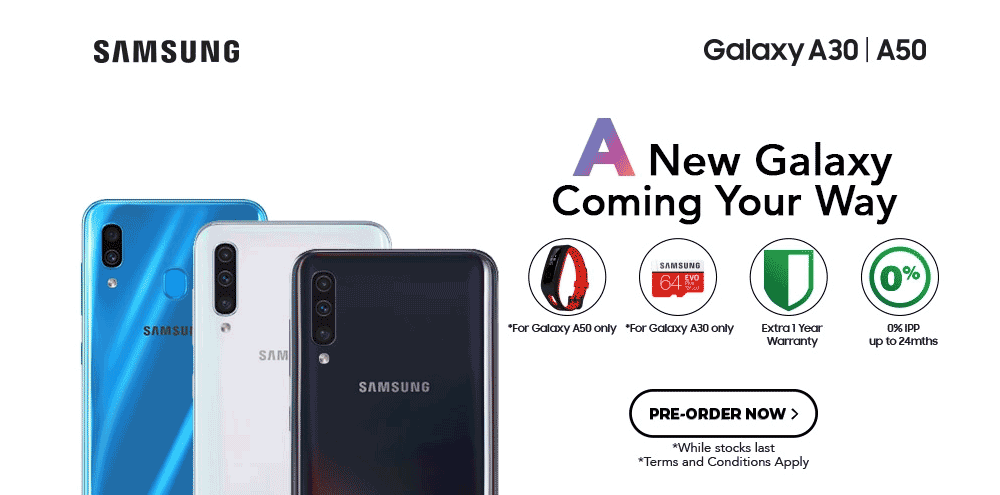 As revealed earlier, the Galaxy A30 with 4GB RAM + 64GB storage is priced at RM799 while the Galaxy A50 with 6GB RAM + 128GB storage is going for RM1,199. Both devices come in three colour options – Black, Blue and White.