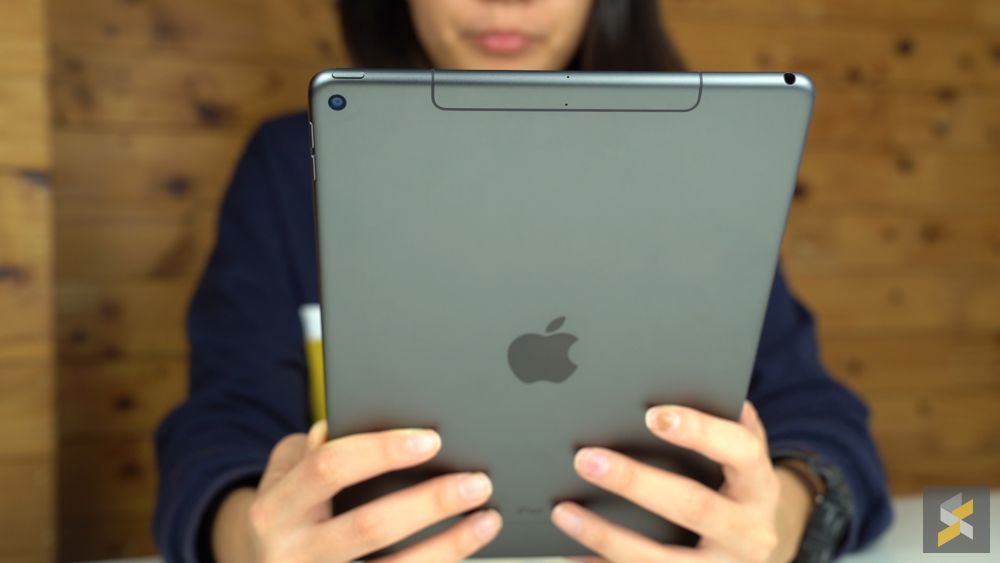 The iPad Air I have with me is the Space Grey version and the design actually looks very similar to the previous generation iPad Pro. At the back you will find a shiny Apple Logo and you will also notice that there’s a camera located at the top left corner.