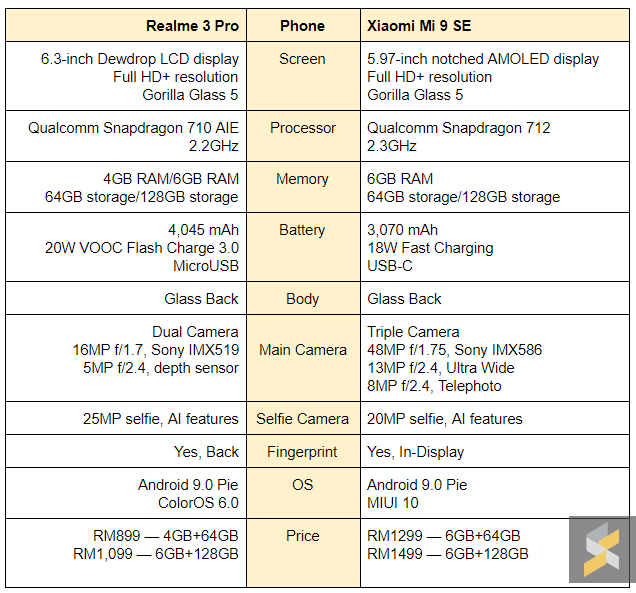 On the other hand, the Realme 3 Pro has prices starting at a staggering RM899 for the base model with 4GB of RAM and 64GB of internal storage. If you want to match the Mi 9 SE’s top spec memory configuration of 6GB of RAM and 128GB of internal storage, you would only have to pay RM1,099. That’s a pretty big difference in price for two phones that have been trading blows this entire comparison.
