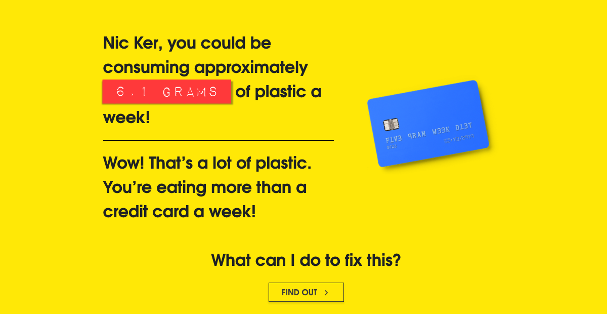 On the campaign’s website, you’ll also be able to take a quick test to see an estimation of how much plastic you’re ingesting on a regular basis.
