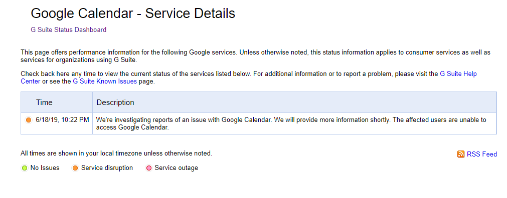According to G Suite Status Dashboard, the service disruption for Calendar was reported at 10:22PM Malaysian time and Google is currently investigating the issue. They acknowledged that some users are unable to access Google Calendar.