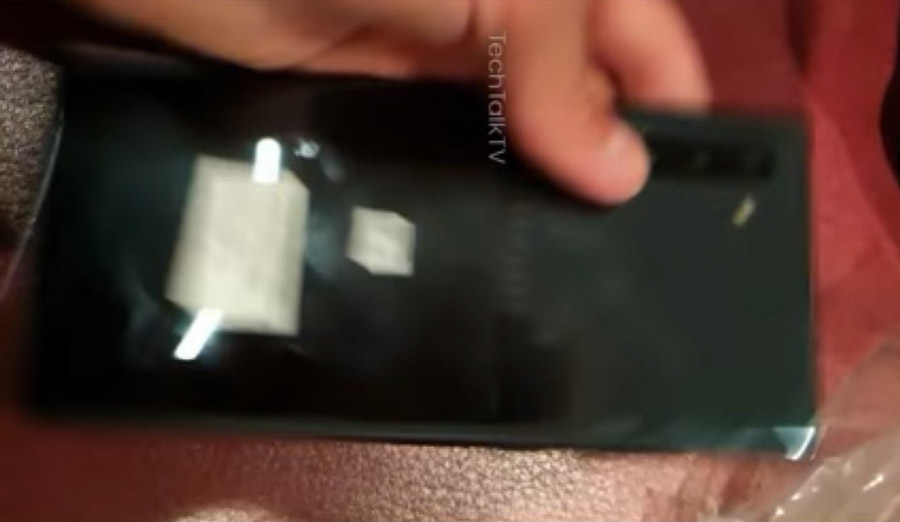 The rear shot is very blurry but we can see that it comes with a multi-camera setup that’s arranged vertically. The Galaxy Note 10+ is expected to come with a quad-camera setup and the 4th ToF shooter for depth effects could be placed at the sides of the bump. Overall, it still matches the high-resolution render of the Galaxy Note 10 that was provided by @OnLeaks.