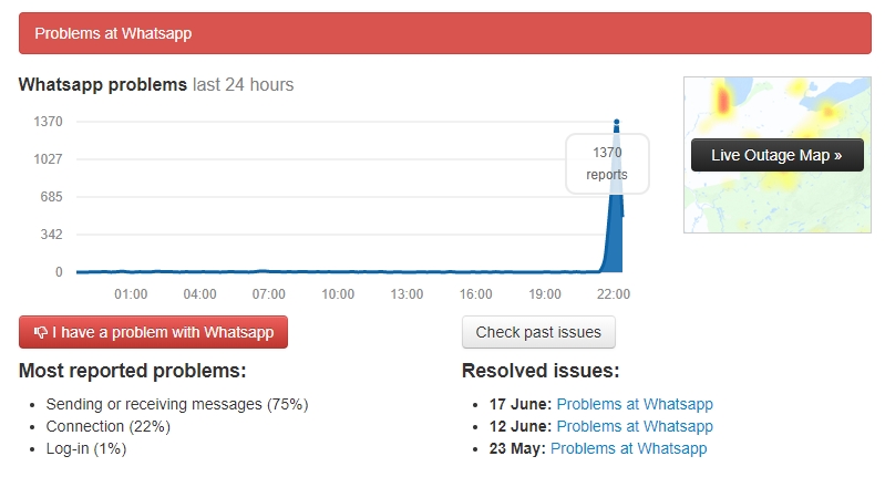 At the time of writing, there’s a spike of complaints reported on downdetector.com for Facebook, Facebook Messenger, Instagram and WhatsApp, from across multiple locations worldwide.