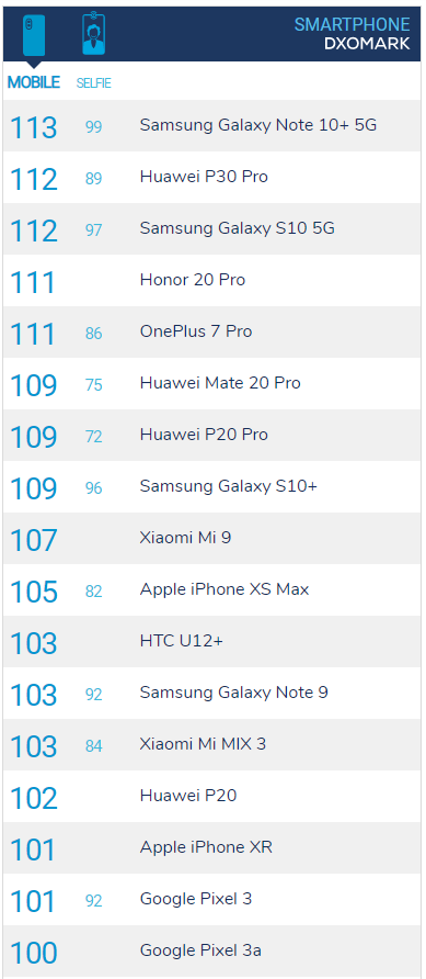You can read the full review here. Below is the current DxOMobile Mobile scoreboard: