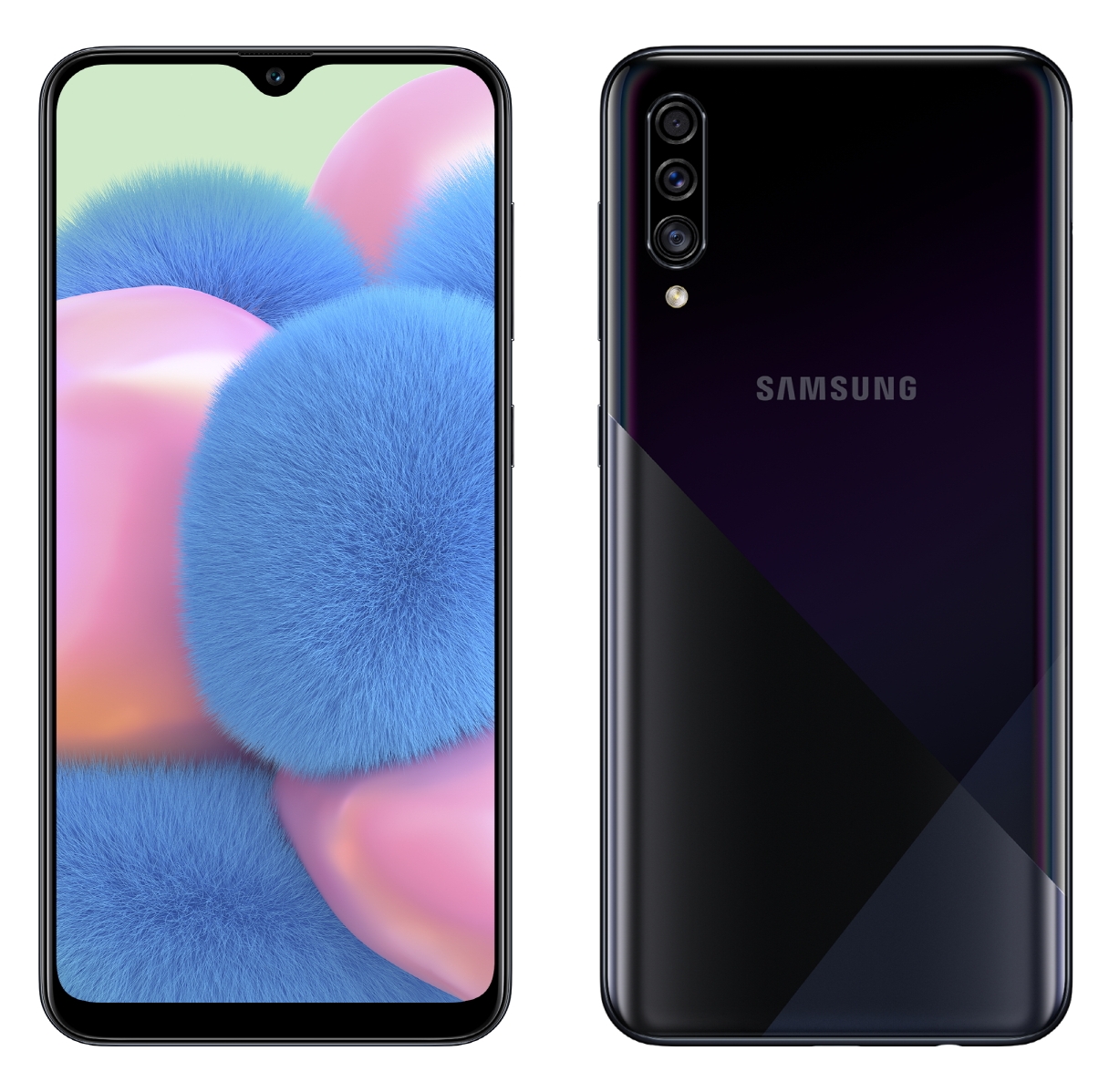 Going a notch below is the Galaxy A30s. Although it has a 6.4″ Super AMOLED display, the resolution has been downgraded to HD+ (1560×720) and it has an on-screen fingerprint sensor. The processor appears to be similar to the current A30 and it is offered with up to 4GB RAM and up to 128GB of storage.