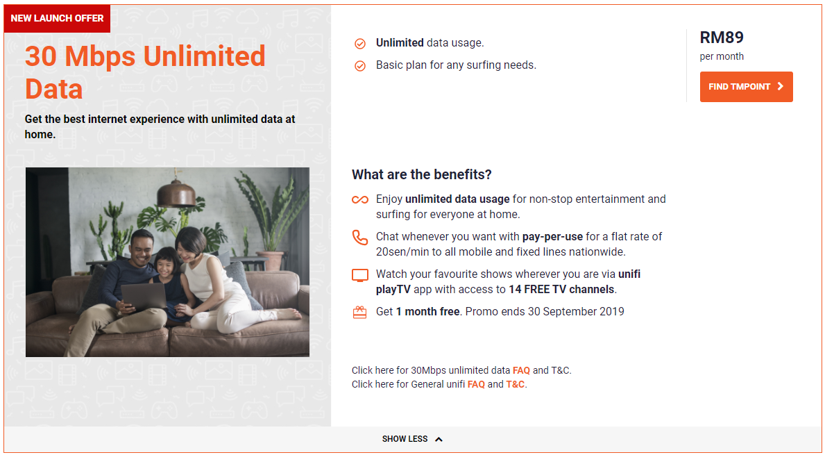 If you sign up for the 30Mbps unlimited plan and above from now until 30th September, TM is also offering free 1-month subscription.