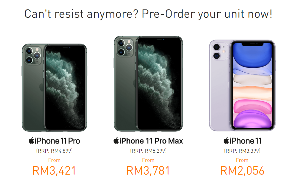 On U Mobile, you can get the base 64GB model for the iPhone 11 from RM2,056, iPhone 11 Pro from RM3,421 and the iPhone 11 Pro Max from RM3,781. The pre-order is available until the 24th of September 2019 and the plans are tied to a 24-month contract.