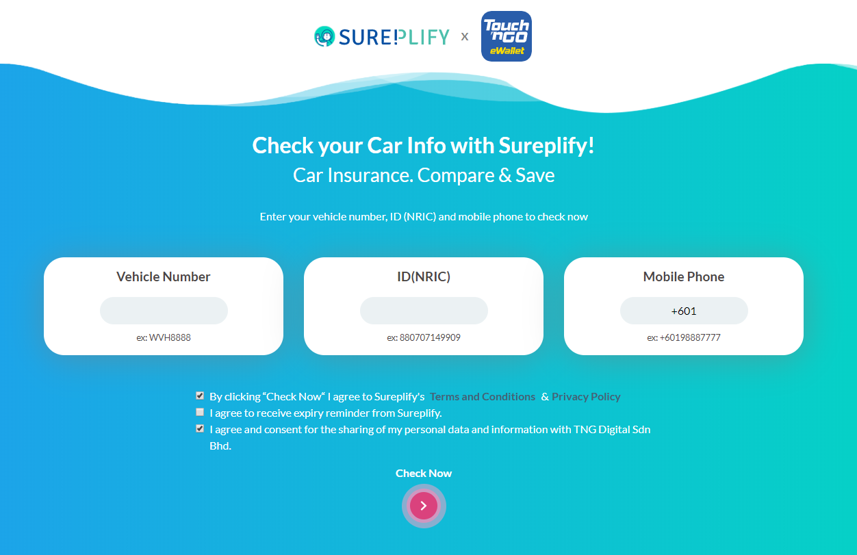 To check if you’re eligible to register without extra documentation, you need to check via Sureplify. Just enter your vehicle number, NRIC number and your mobile number that’s used for your car’s insurance policy.