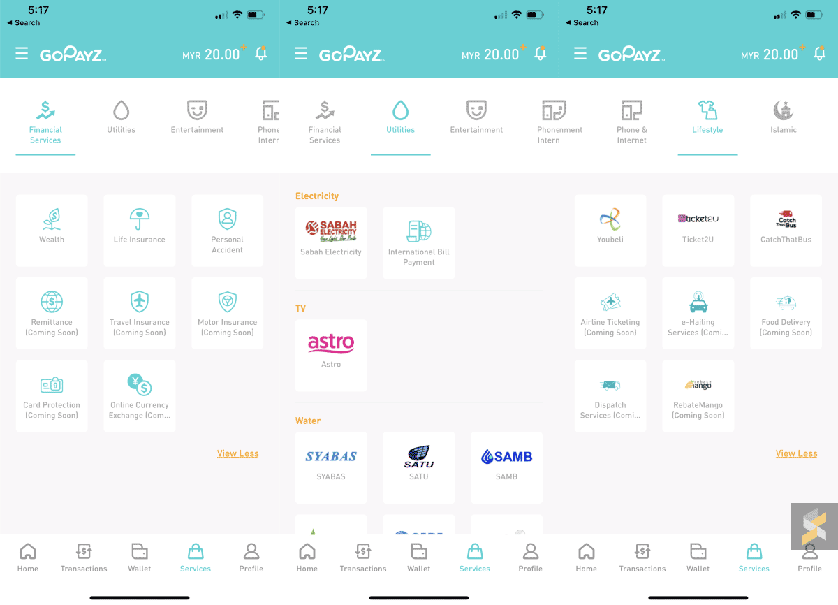 For now, you can use the app to purchase mobile prepaid reloads, Razer Gold, Stream Wallet credits and Astro NJOI. You can also use it to pay for YouBeli, Ticket2U and CatchThatBus.