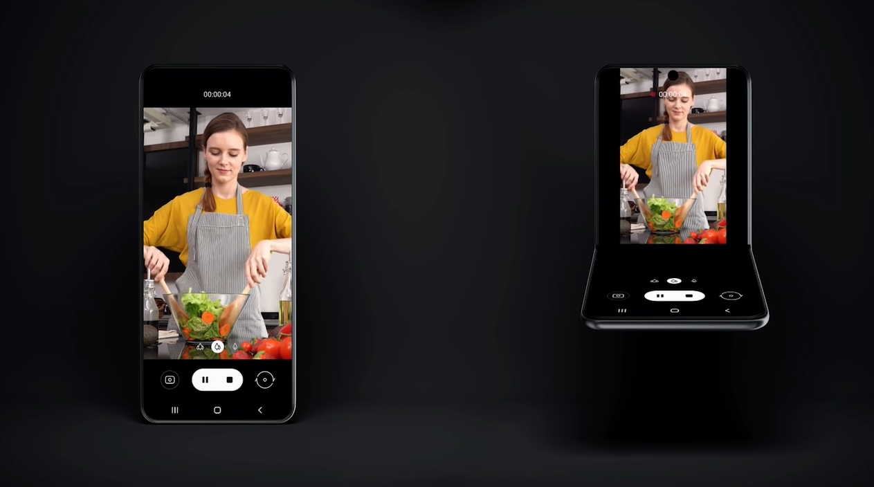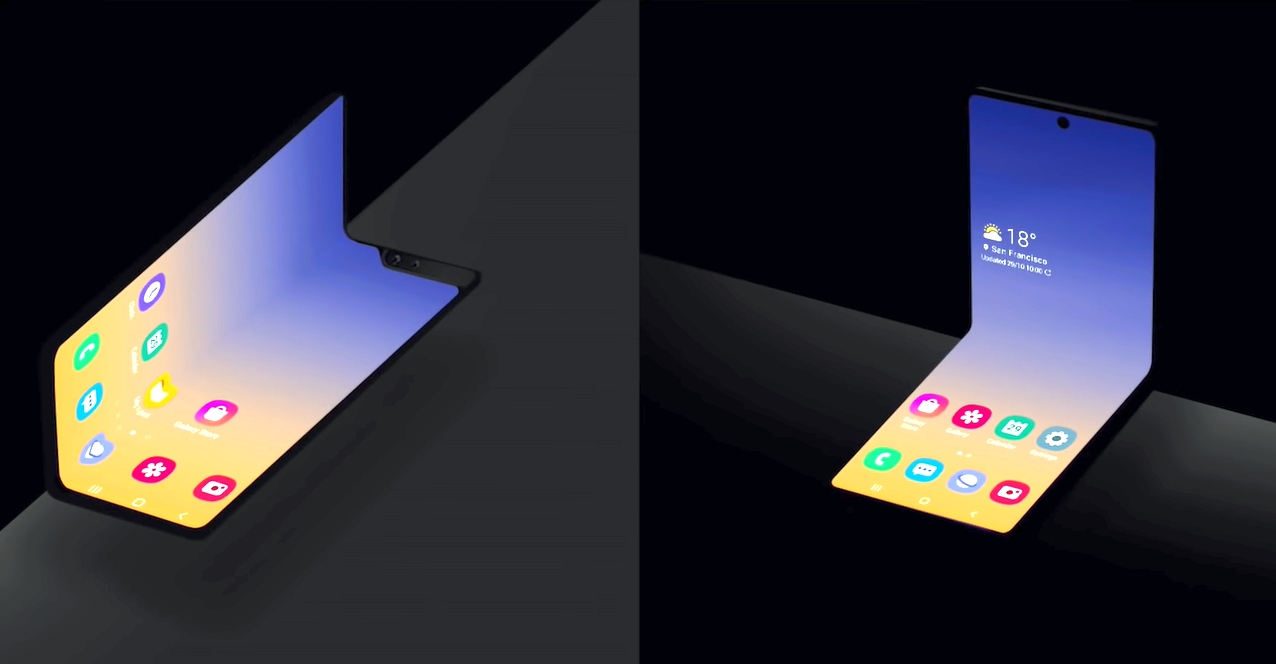 This looks like Samsung’s take on the RAZR if it was given the job to do so. From the video, the foldable screen even comes with a punch-hole in the top centre which is used for a camera for selfies or video calls.