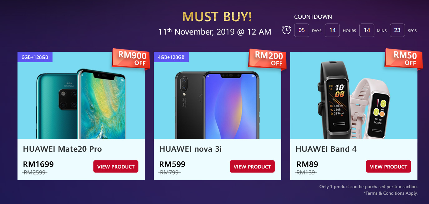 This promo is happening on 11th November 2019 for a limited time starting from 12am. If you’re interested, you can get it on both Huawei Online Store as well as Lazada Malaysia.