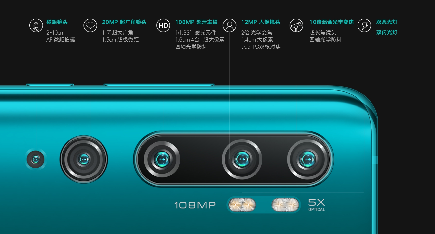 In addition, the CC9 Pro also gets a 20MP f/2.2 ultra-wide-angle camera that has a 117-degree field of view, plus a dedicated macro lens with autofocus that allows you to capture subjects between 2 – 10 cm. If you want to go even closer, the ultra-wide-angle camera supports super macro at 1.5cm. For better illumination, it has two flash modules for hard and soft light.