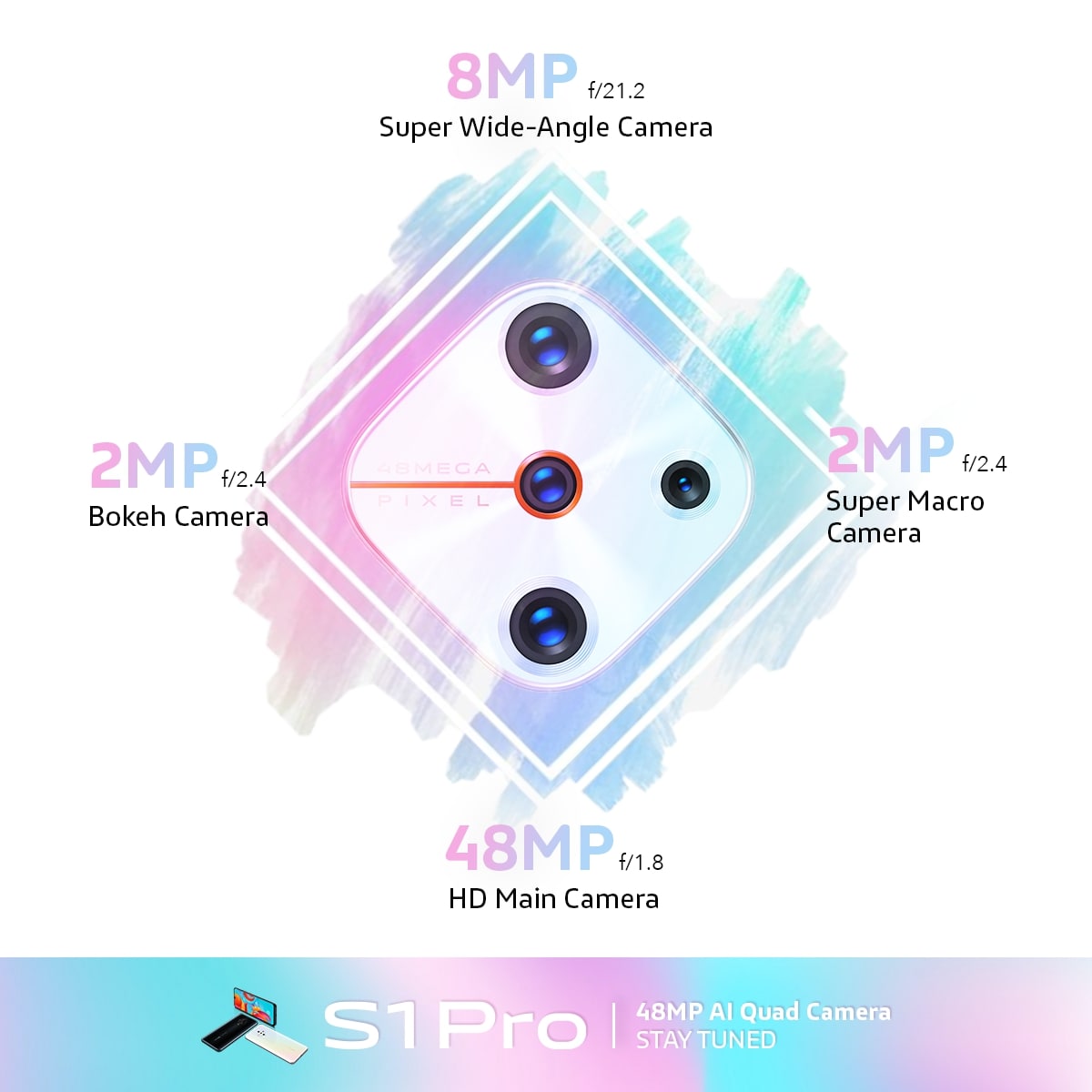 For taking pictures, the S1 Pro comes with a rather odd quad-camera arrangement that resembles a cube rotated at a 45-degree angle. It will feature a 48MP main camera that uses a Samsung GM1 sensor that shoots 12MP images by default in 4-in-1 mode. It also comes with an 8MP f/2.2 ultra-wide-camera, a 2MP f/2.4 macro shooter and a 2MP f/2.4 bokeh camera.
