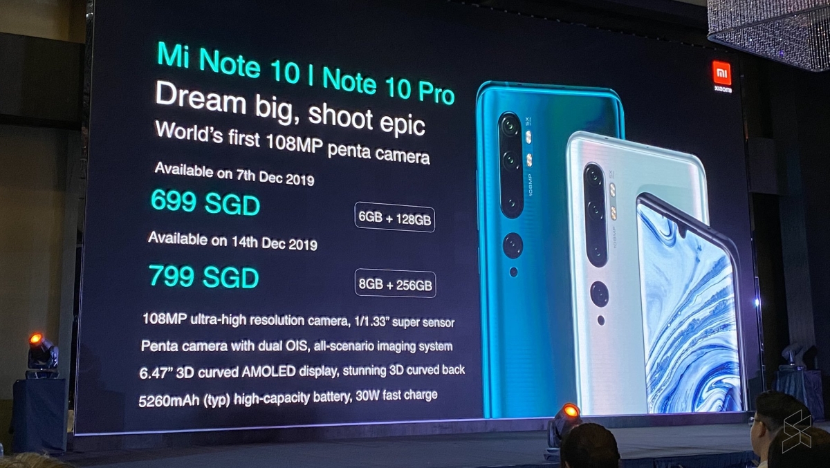 At today’s event, Xiaomi has also revealed the Singaporean pricing for the Mi Note 10 series. The standard Mi Note with 6GB RAM + 128GB storage is priced at SGD 699 while the Pro version with 8GB RAM + 256GB storage is going for SGD 799.