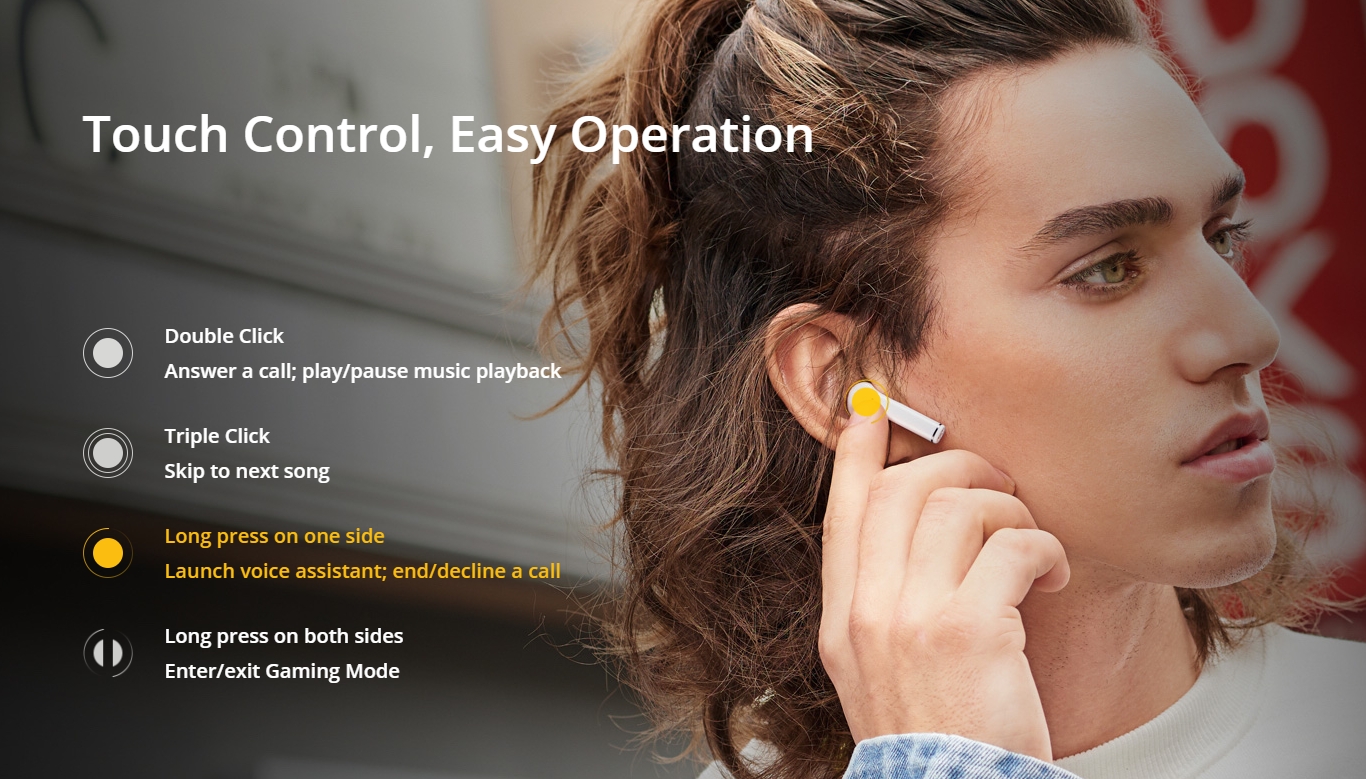 To control your music playback, it supports tap controls to play/pause your music. You can also perform long-press actions to trigger Google assistant or to end or decline an incoming call.