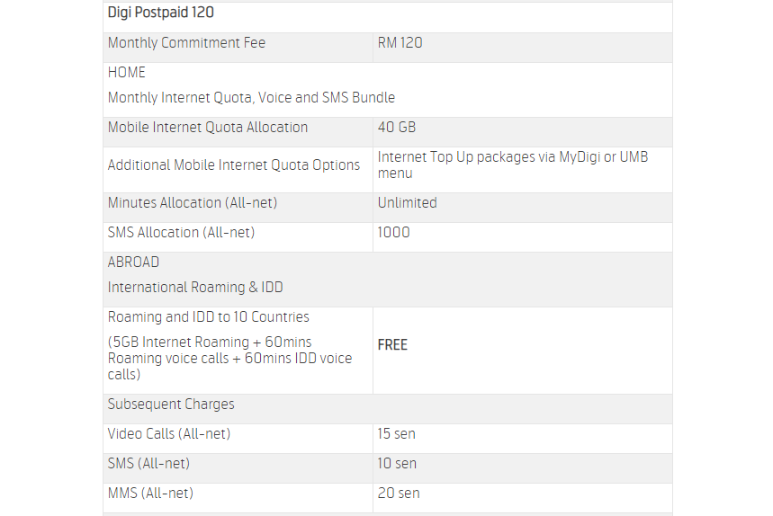 For Digi Postpaid 120, it is a no brainer as the new plan gives you 10GB more data than before and the rest of the plan offering remains unchanged. You still get unlimited calls and 1,000 SMS each month which you can use on all networks.