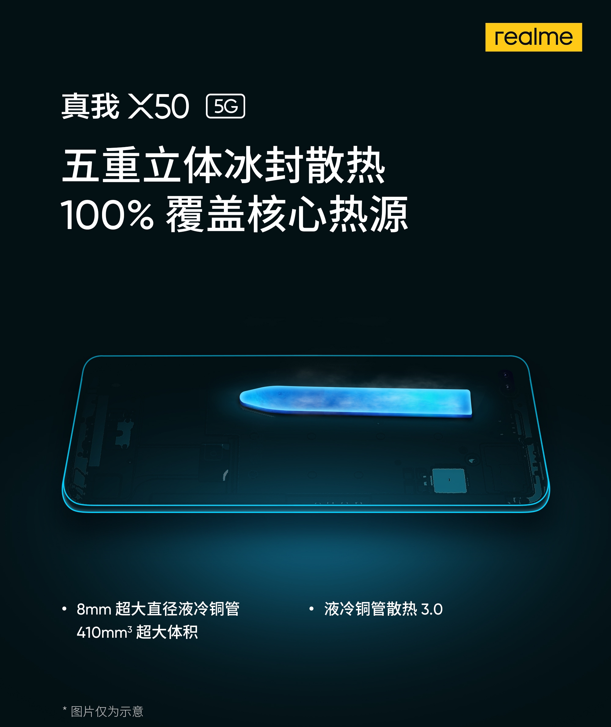 To keep things cool, the 5G device is equipped with an 8mm diameter liquid-cooling chamber that has a volume of 410mm³. This is designed to enable you to run at maximum performance without worrying about heat.