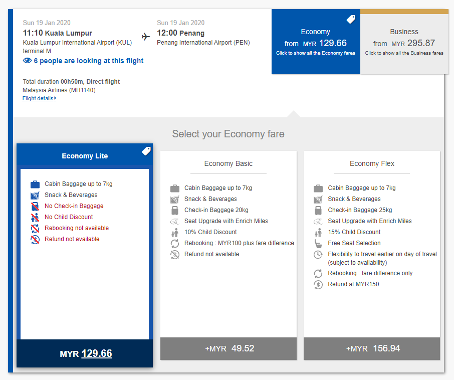 Do note that the advertised price is for the “Economy Lite” fare. The cheapest domestic fare does not come with check-in luggage. If you need it, you’ll need to select Economy Basic which comes with 20kg allowance.