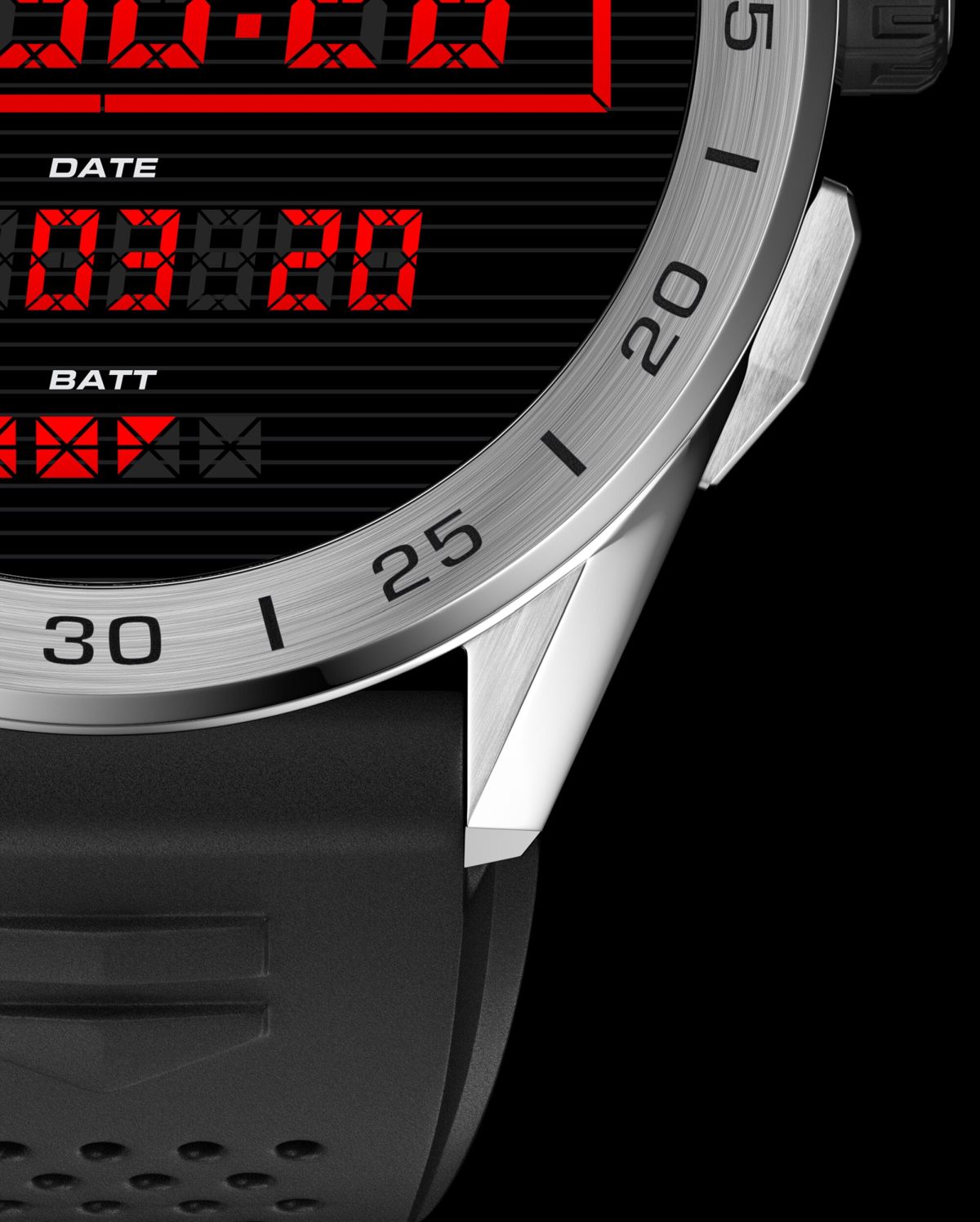 The aesthetic of the device is supposedly inspired by Tag Heuer’s classic Carrera watches, and you can tell that the designers have focused on the slim factor of the device. Antennas are hidden under a new ceramic bezel, and the stainless steel and titanium cases measure at 45mm.