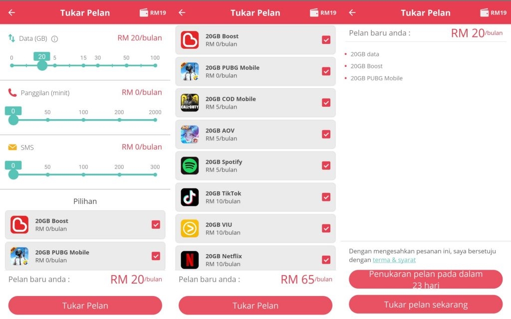 If you updated the official app to the latest version, there’s now the option to change the plan immediately without waiting for your next billing cycle. Do note that this will forfeit your existing quota and it will be replaced with the new plan selection.
