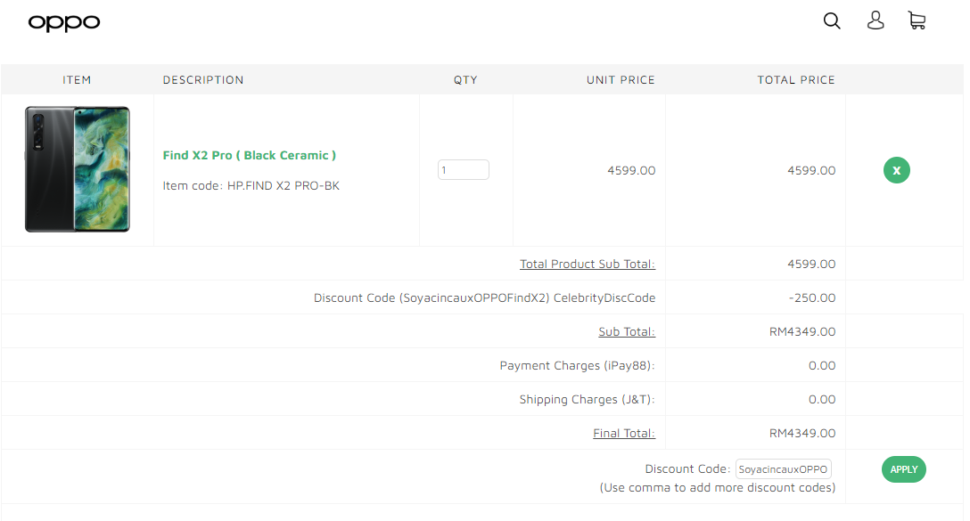 This campaign is running from today, 19th March until the 31st of March 2020 and Oppo is giving a total of RM10 million worth of discounts. This promotion is only available on the official Oppo Online Store and below are the promo codes: