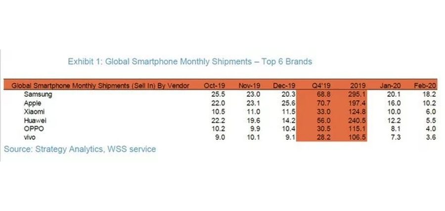 The coronavirus outbreak has shown its negative impact on the smartphone market last month and it looks like Huawei has been badly hit especially with the on-going restrictions by the US Government. According to Strategy Analytics, Huawei has slide to #4 position in terms of global shipments and the Chinese smartphone giant has been overtaken by Xiaomi.
