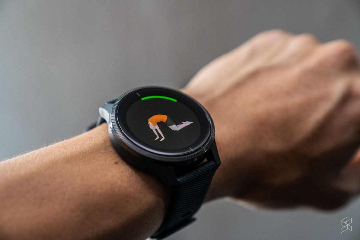 Perhaps the most interesting bit that Garmin has included with the Venu is workout animations. For over 40 workouts, including yoga, Pilates, cardio, and strength exercises, your smartwatch will display an animation that guides you through specific workouts on-screen. During yoga and breathing exercises, you’ll also be shown your respiration rate to better track yourself.