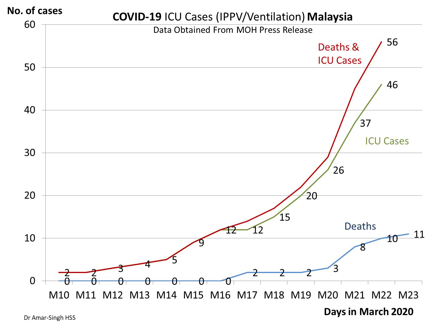 I would like to end by speaking a little about the potential growth and impact of this outbreak. When testing numbers are limited, as in Malaysia, we may get a better idea of the outbreak by looking at deaths and ICU admission. I have plotted two graphs (attached) – one that shows our outbreak in comparison to selected neighbouring countries and another that tracks our ICU admission and deaths. The rapid escalation of deaths and ICU admission suggests our epidemic is growing fast.