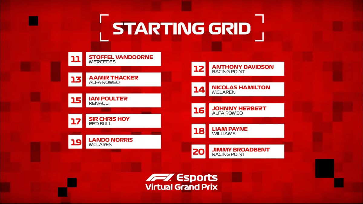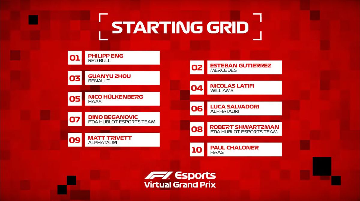 The Virtual Grand Prix was played over the official F1 2019 PC video game over the course of 14 laps: 50% of a full-length race. Just like a real Grand Prix, starting grid positions were determined by qualifying times; less like a real Grand Prix, participants were allowed to select anti-lock brakes and traction control if they were “less familiar” with the game.