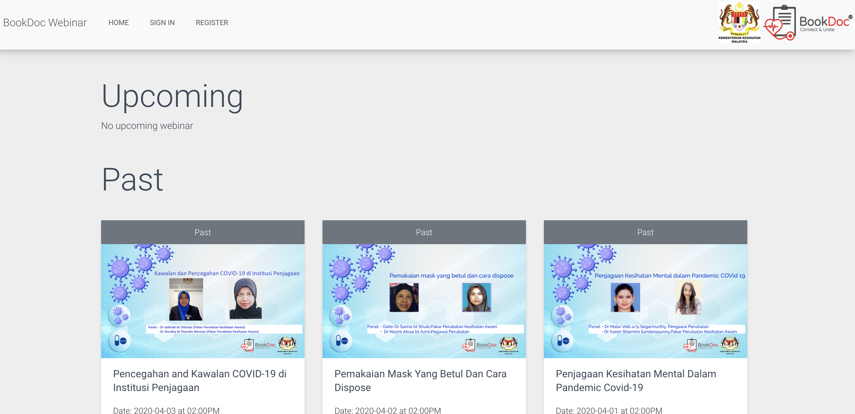 The Webinar’ video sessions are seen either scheduled or put as past sessions. The videos are streamed through Twitch, and they feature public health specialists and MOH medical officers to help answer web-based question-and-answer sessions.